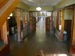 Over the years there have been structural changes to the building and the original entry no longer exists. The entry now is an unobtrusive clear glass doorway on the Ave which opens into a narrow hall and curved stairway up to the second floor studio.